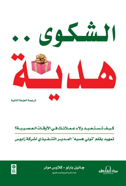 كتاب "الشكوى... هدية كيف تستعيد ولاء عملائك في الأوقات العصيبة؟ " من تأليف "جانيل بارلو و كلاوس مولر " يوضح المؤلفان أهمية شكاوى العملاء ويرى أنها أفضل الصفقات الرابحة في أبحاث السوق، فهي تفيد المؤسسة من جانب وتحقق الشعور بالرضا للعميل على الجانب الآخر. تتضمن النسخة الثانية من هذا الكتاب فصلاً جديدًا يتحدث عن تلقي الشكاوى عبر الإنترنت والرد عليها، وفصلاً آخر عن كيفية التعامل مع الشكاوى الموجهة إليك أنت شخصيًّا. ثمة جزءٌ آخر من الكتاب يناقش كيفية قلب المواقف لصالحك وكيفية الرد على الشكاوي بطريقة بنَّاءة وفعّالة. جديرٌ بالذكر أن هذا الكتاب مُرَاجَع ومُنَقّح جيدًا وحافلٌ بالكثير من الأمثلة والأدوات والاستراتيجيات الجديدة.